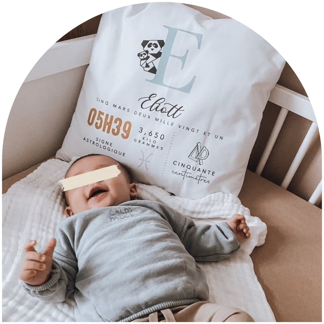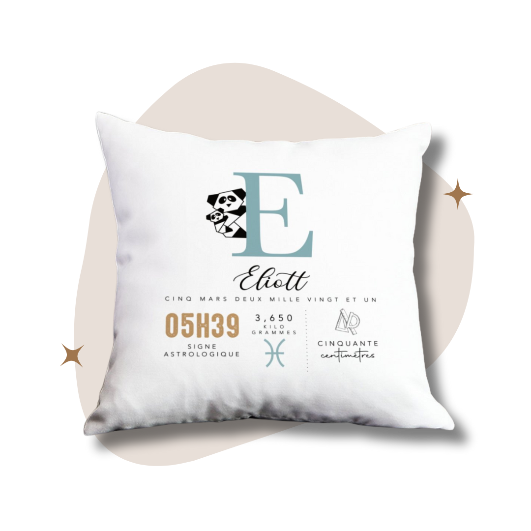 Le coussin modèle Eliott, est parfait comme cadeau de naissance ! Un joli souvenir pour les parents, original qui fera à coup sûr son petit effet !